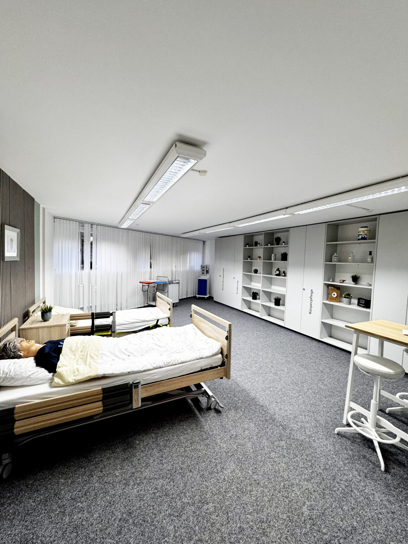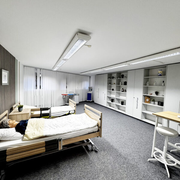 - Demoraum: Idealer Ort, um pflegerische Situationen anschaulich darzustellen, praktisch zu üben und anschließend gemeinsam zu reflektieren.